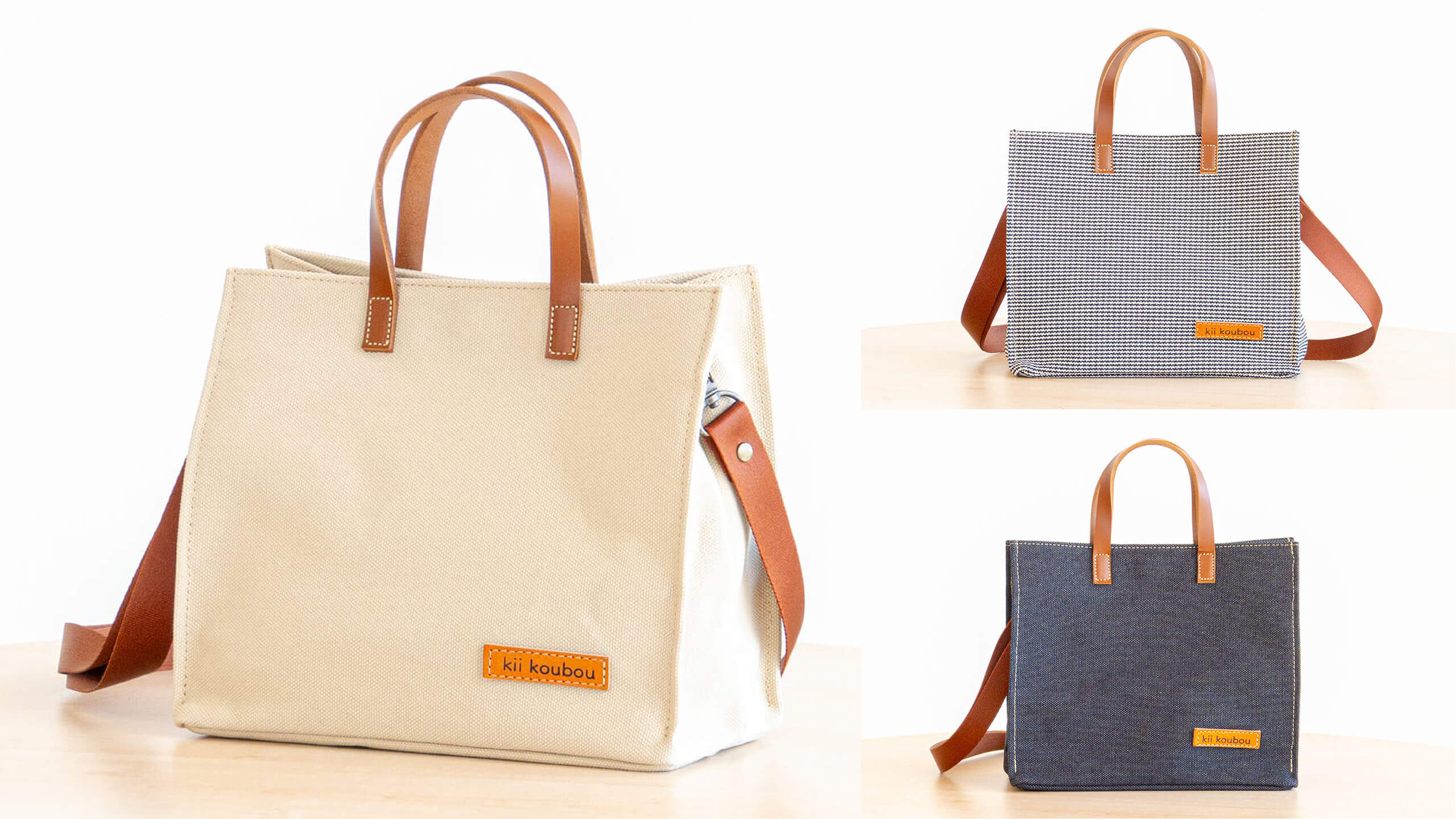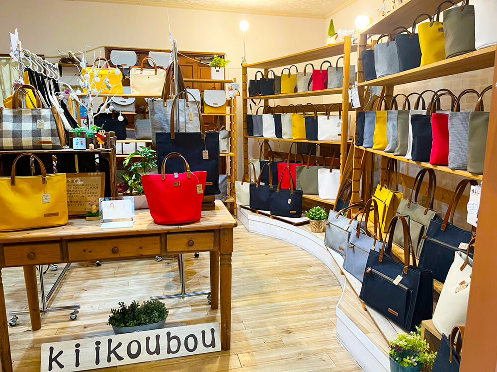 kii工房では、地元高島市で生産された丈夫な帆布を使用したかばんをひとつひとつ心を込めて手作りしています。