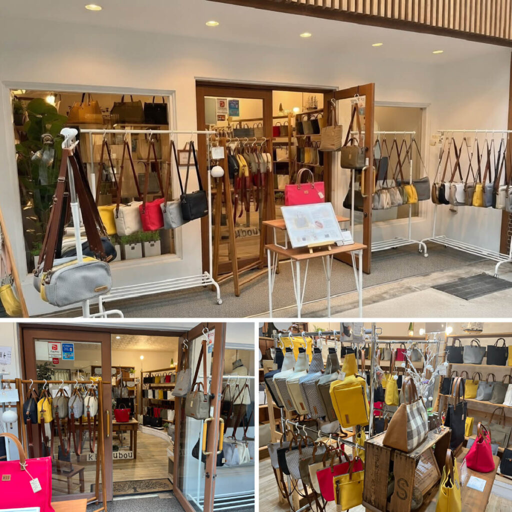kii工房のかばんは滋賀県内の道の駅、アウトレット、高速サービスエリア、ホテルのほか、以下の店舗でお買い求めいただけます。なお、高島市新旭町の工房では販売は行っておりません。